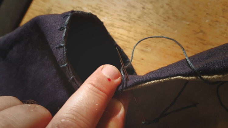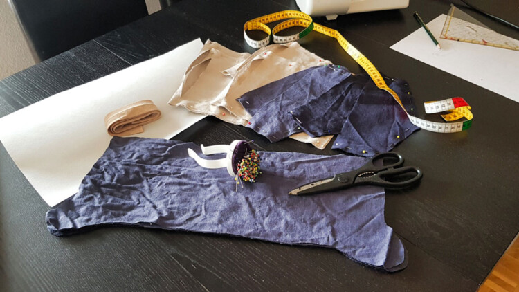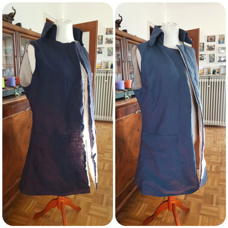 Letzte Woche habe ich dann auch schon zwei Westen genäht. Wieder mit Stehkragen natürlich, dieses Mal aber auch eine Version in einem dunkleren Blau. Am Montag gehen sie zu einer Schneiderin, die mir die ätzende Arbeit mit den Knopflöchern abnimmt. Bis dahin möchte ich aber schon soweit möglich die Handziernähte fertig haben.
