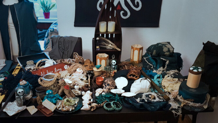 Aber es geht ja nicht nur mir so. Also mit dem plötzlich auftretenden Bastel- und Nähwahnsinn vor dem überraschend vor der Tür stehenden Drachenfest. Zum einen habe ich schon entsprechende Beiträge in den sozialen Medien gesehen. Zum Anderen explodiert auch gerade der Fundus für das Voodoozelt meiner Frau, die ständig neue Sachen bastelt.