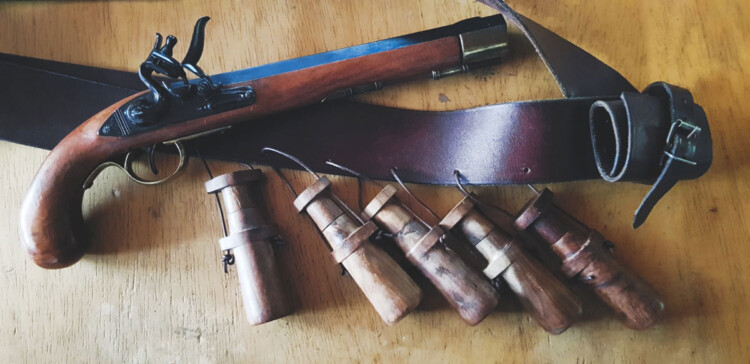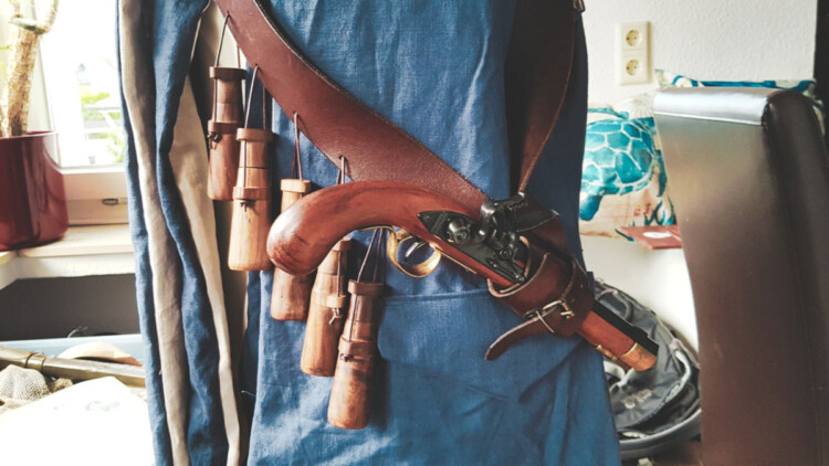Da ich ja gerade dabei bin habe ich mich auch entschieden jetzt die Sache mit dem Ausspielen der Schwarzpulverwaffen noch anzugehen. Ergo kommen die Apostel jetzt an meinen Crossbelt sowie ein Beutel für die Kugeln. Von meinem Nachbarn, der das Larpen aufgegeben hat, habe ich zudem sein Perkussions-Karabiner erstanden, ein Gewehrriemen aus Leder ist auch schon bestellt.